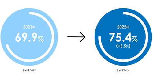 75.4%の企業がDXの成果が出ていると回答、2021年から5.5%増